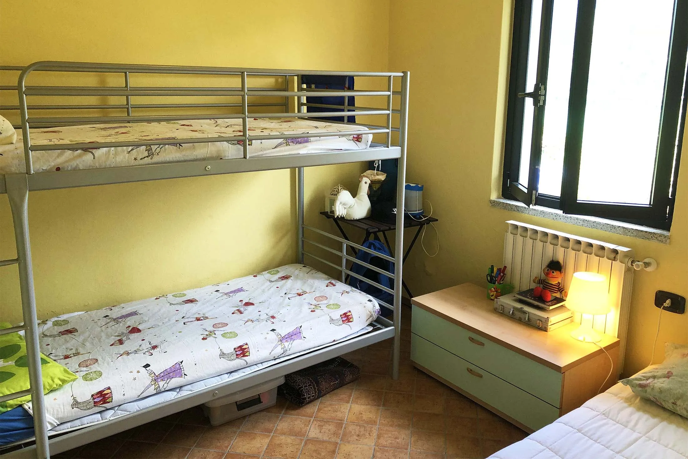 Die Unterkunft besteht aus einem Schlafzimmer mit Doppelbett, einem Schlafzimmer mit Etagenbett und Einzelbett, einem Wohnzimmer mit Schlafsofa und Küchenzeile sowie einem Badezimmer mit Dusche.