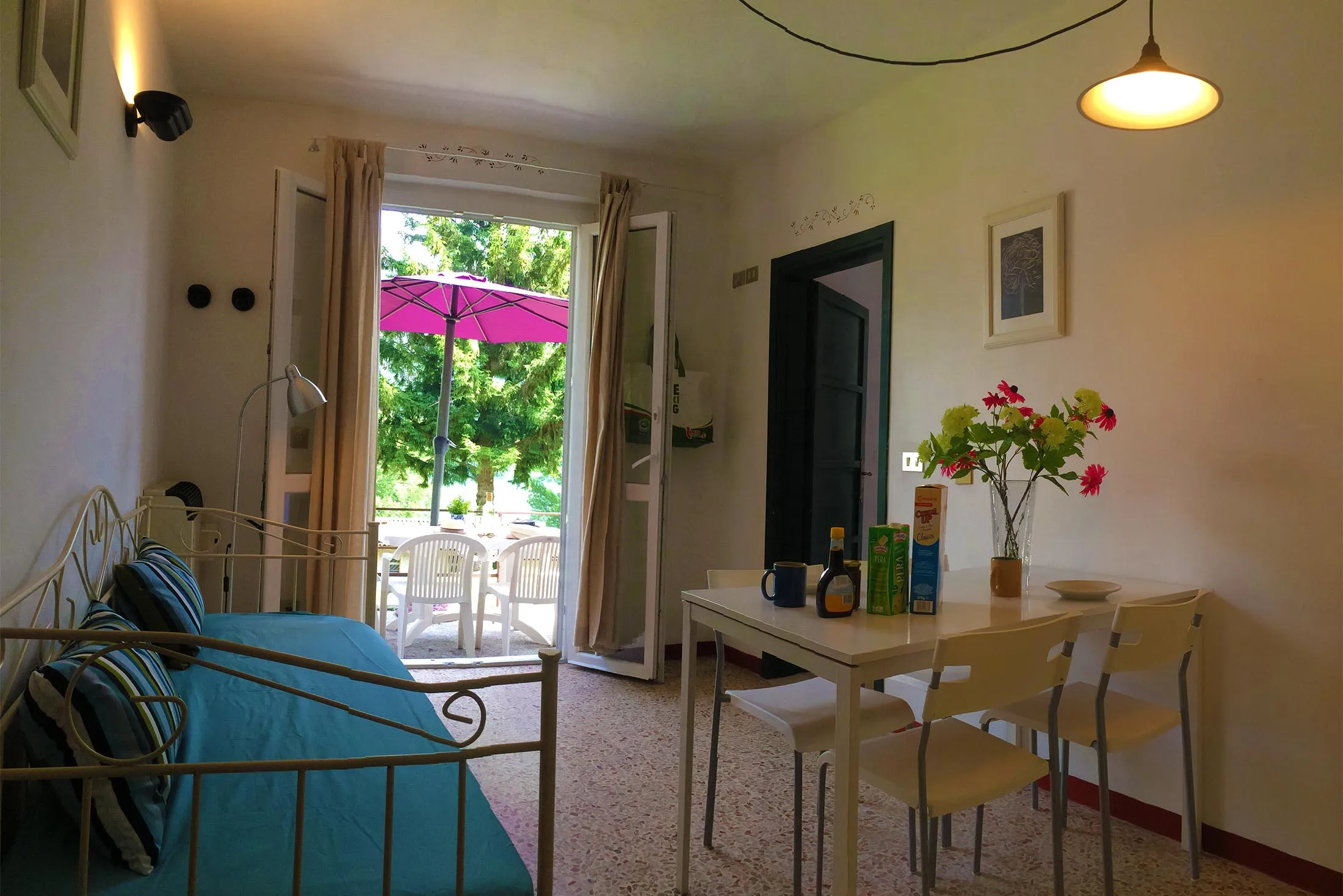 Diese Wohnung befindet sich im Erdgeschoss eines Gebäudes mit vier Wohneinheiten: zwei im Erdgeschoss und zwei im ersten Stock. Die 40 m² große Wohnung mit Terrasse und Seeblick bietet Platz für bis zu fünf Personen.
