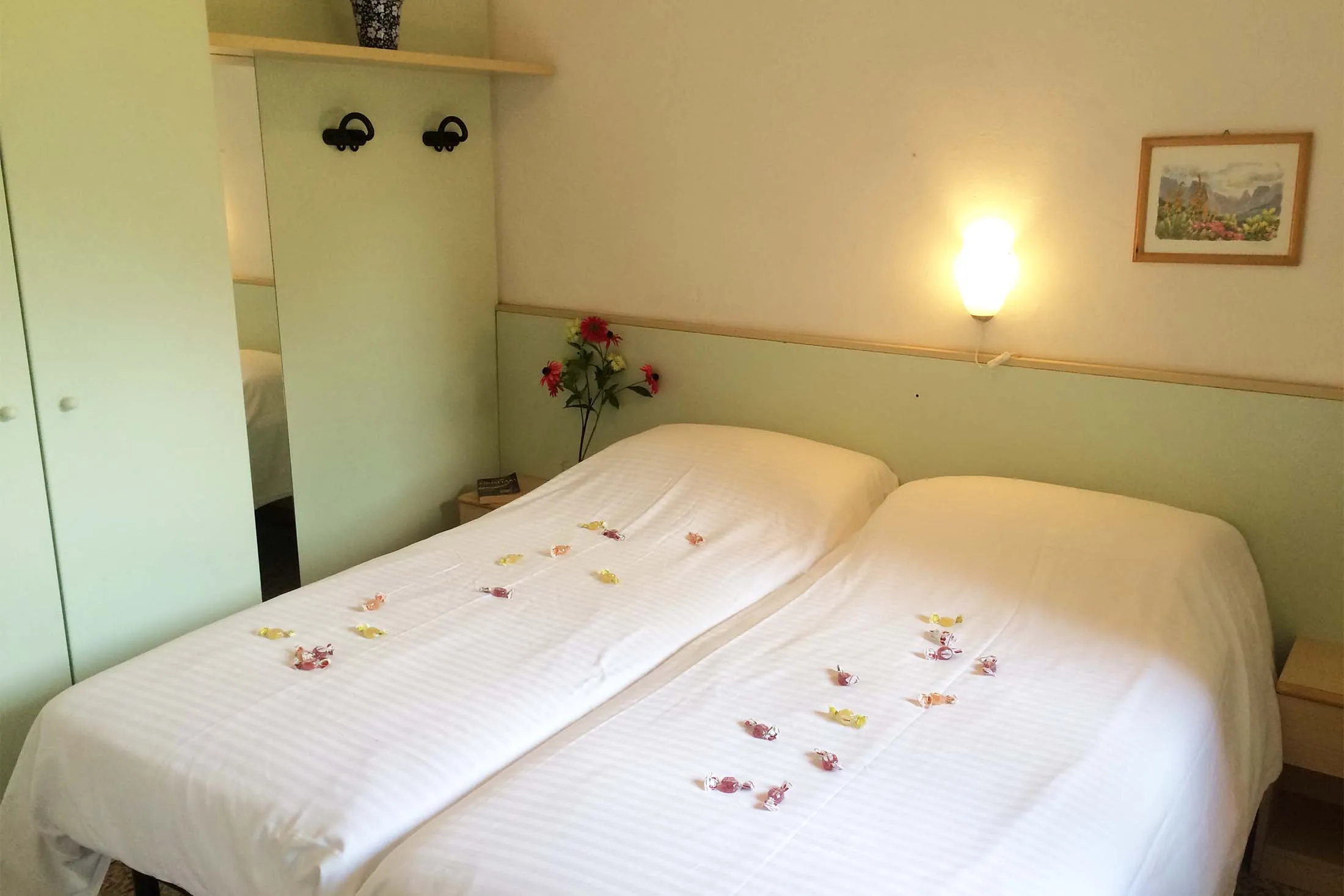 Die Unterkunft verfügt über ein Schlafzimmer mit Doppelbett, ein Schlafzimmer mit zwei Einzelbetten, ein Wohnzimmer mit einem Einzelbett, zwei Badezimmer mit Dusche, eine Küchenzeile und einen Kühlschrank.
