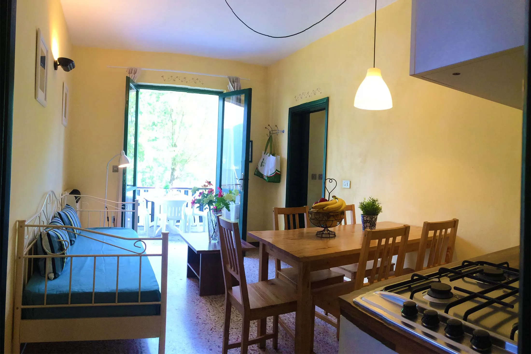 Parking is located at the entrance to the village. From there, you need to go down the stairs to reach the apartment and the lake. Bed linens are not provided; you can bring your own or rent them (advance booking required). Bathroom and kitchen linens are not provided and must be brought from home.