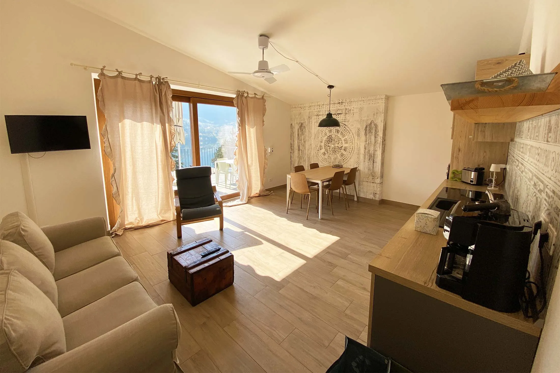 Luxurious 80 sq m lakefront apartment with a large terrace offering stunning panoramic views. Equipped with every comfort, the apartment is located on the first floor above our restaurant, along with three other apartments adjacent to each other.