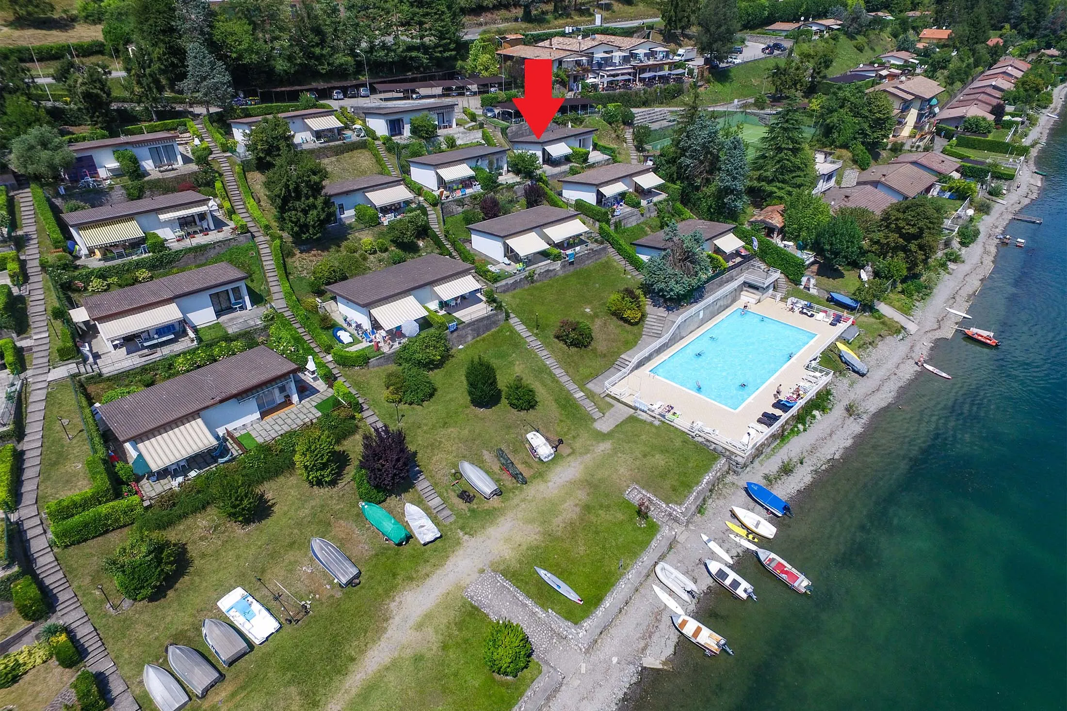 Situato fronte lago, l'appartamento è immerso in un verde parco le cui terrazze naturali digradano dolcemente verso la spiaggia, offrendo una magnifica vista. Il parco è composto da case e appartamenti, una piscina (aperta da fine maggio a metà settembre), un ristorante - pizzeria, un minimarket, campo da tennis, palla volo e tavoli da ping-pong.