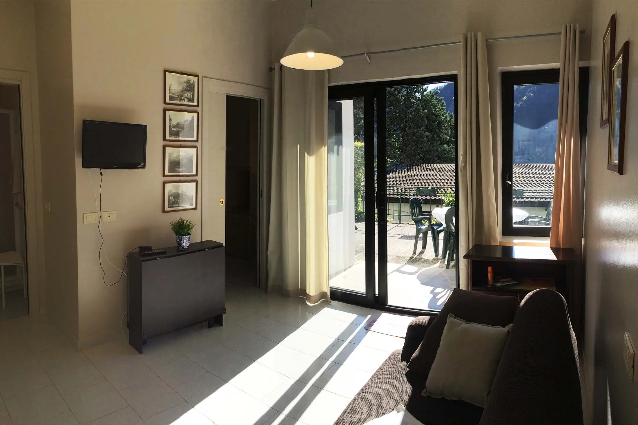 L'alloggio è così composto: una camera matrimoniale, soggiorno con divano letto, bagno con doccia, angolo cucina.