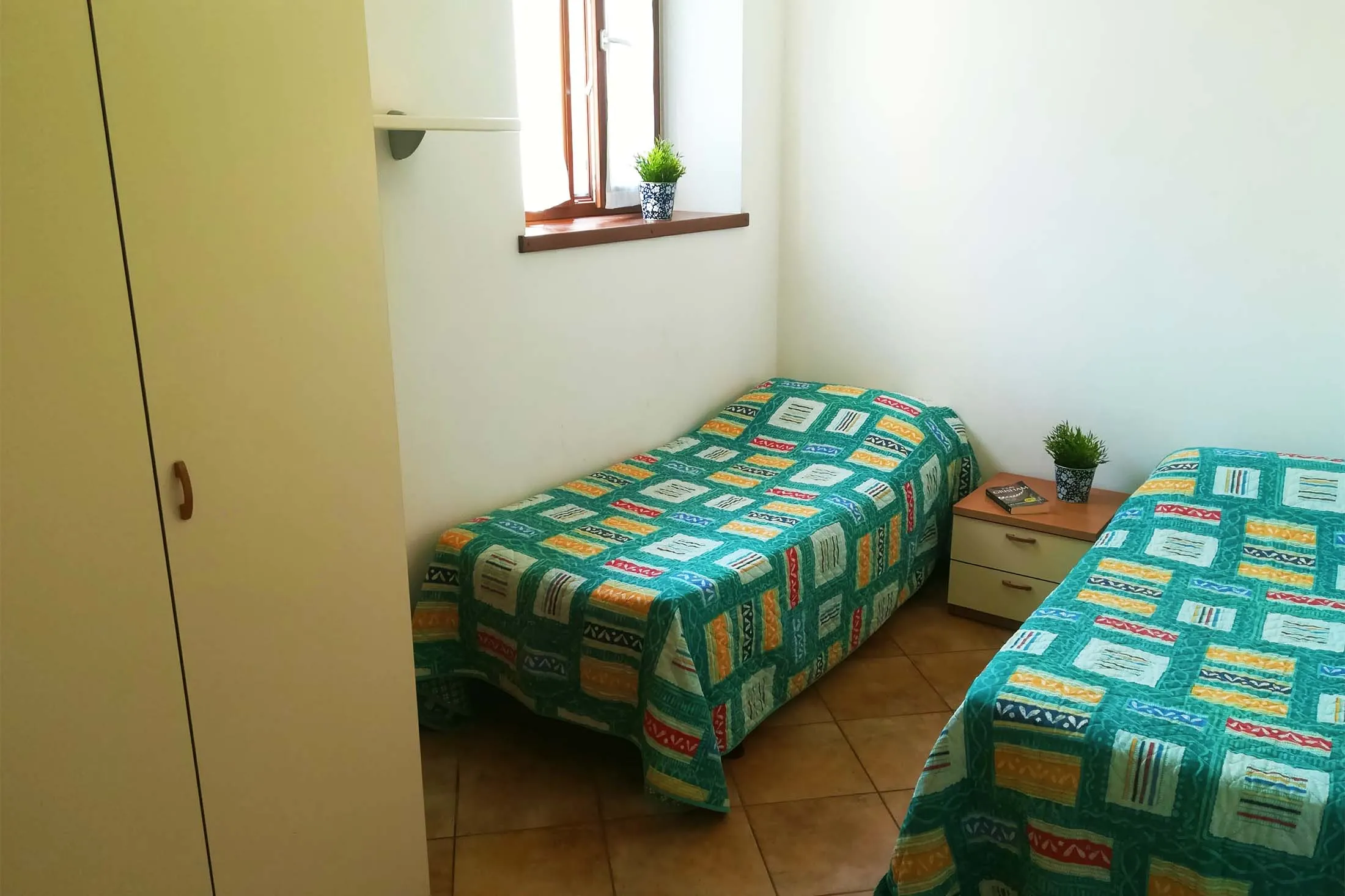 L'alloggio è così composto: una camera matrimoniale, una camera con due letti singoli, soggiorno con cucina e divano letto, bagno con doccia.