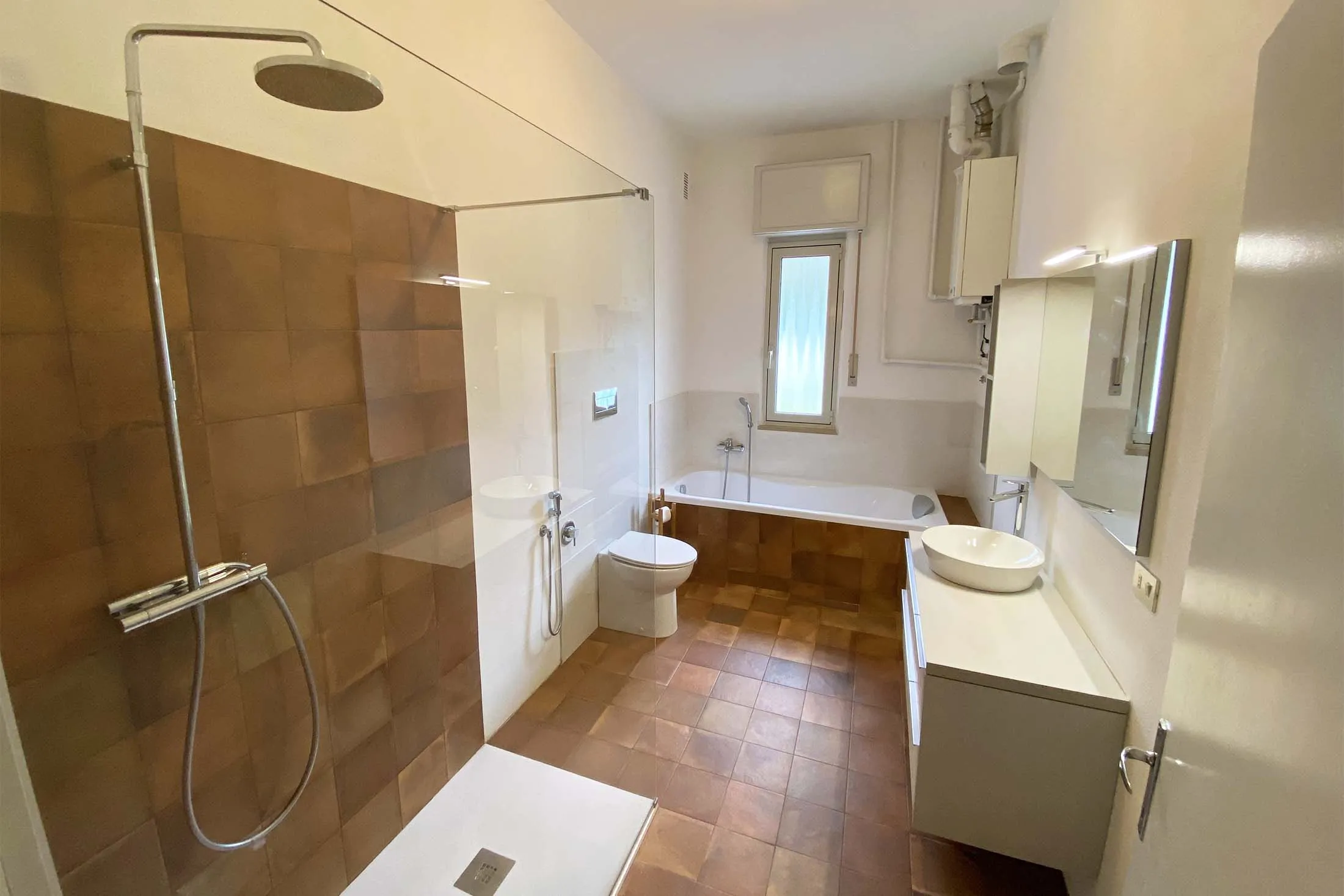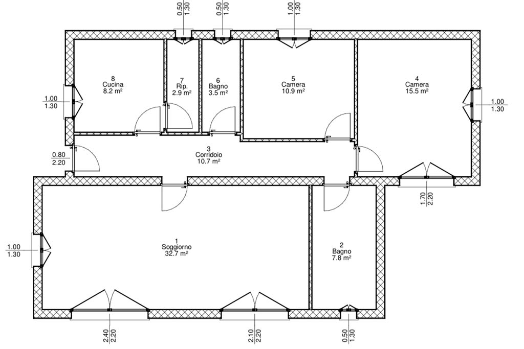 L'alloggio è così composto: una camera matrimoniale, una camera con due letti singoli, ampio soggiorno con divano letto, cucina, bagno con doccia e bagno di servizio.