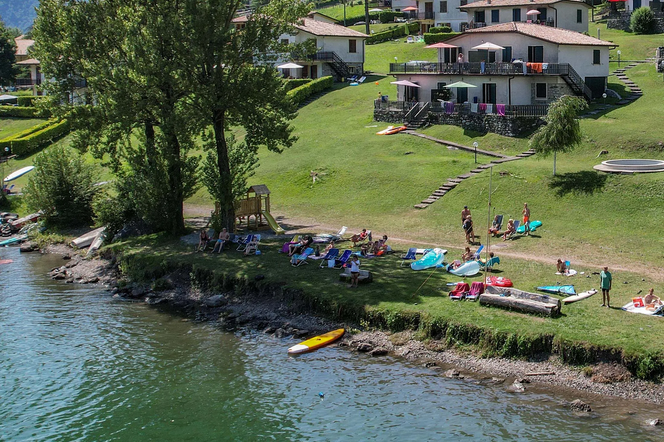 Het appartement ligt aan het meer en wordt omgeven door een groen park met natuurlijke terrassen die geleidelijk aflopen naar het strand en een prachtig uitzicht bieden.