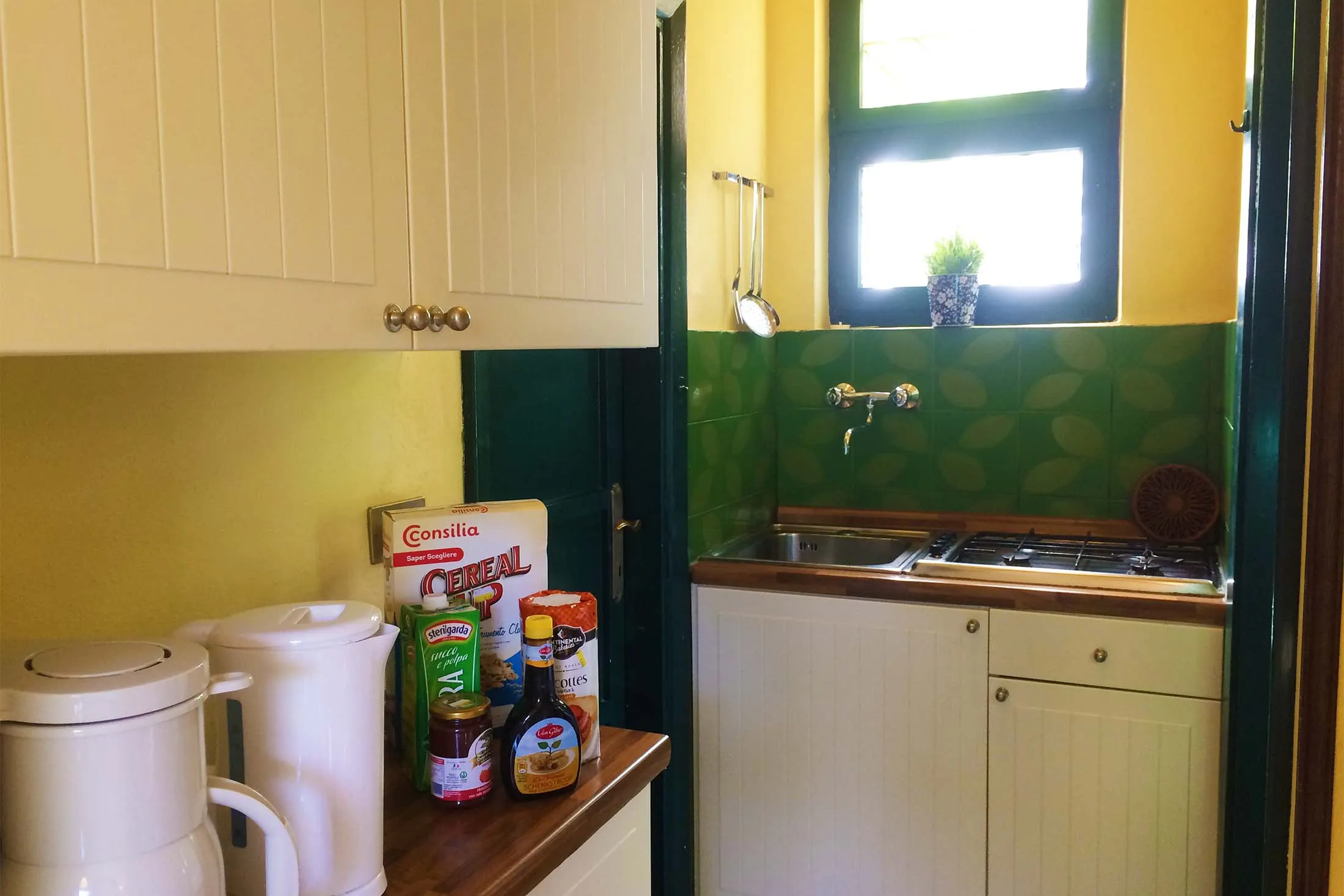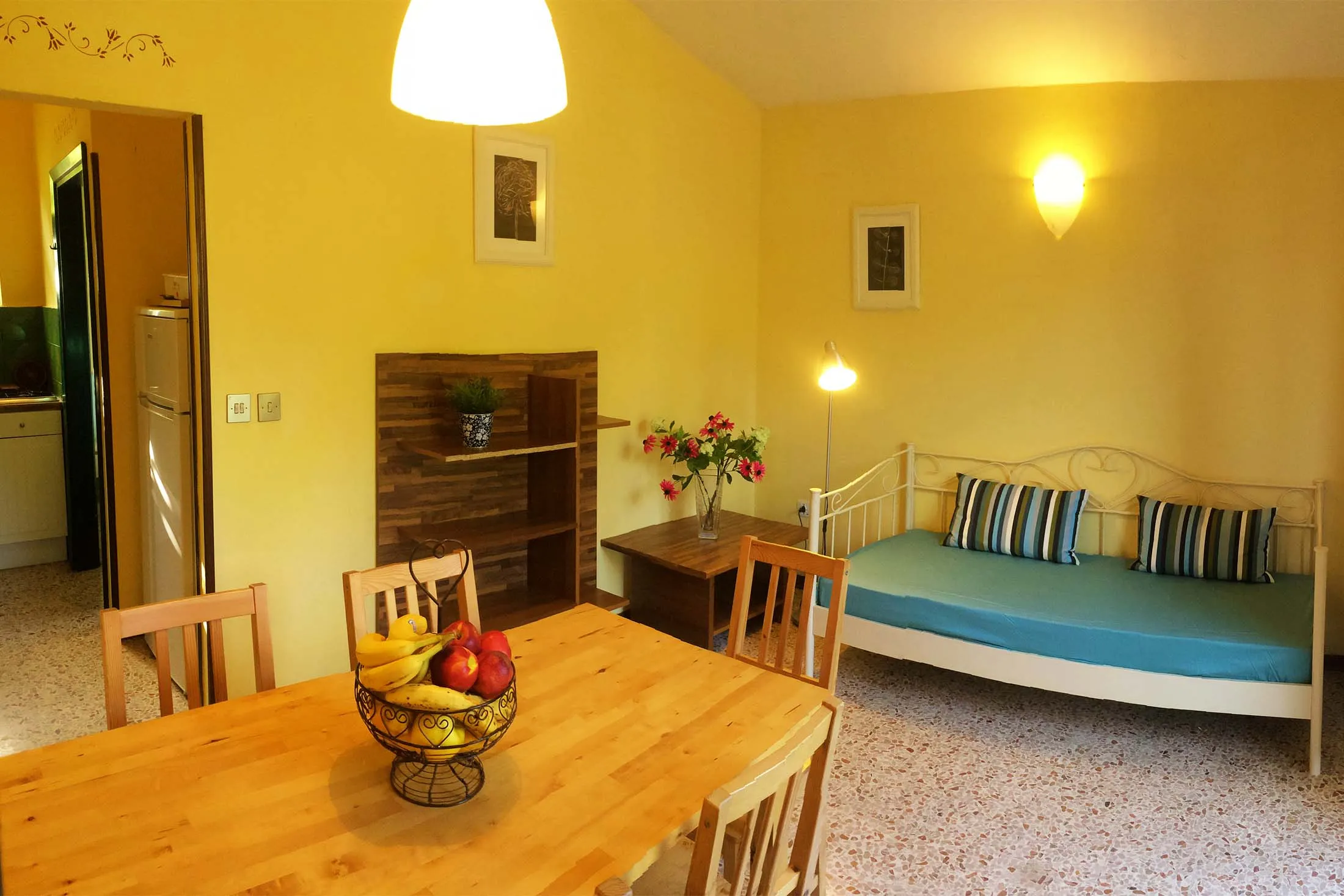 De accommodatie bestaat uit een slaapkamer met een tweepersoonsbed, een slaapkamer met twee eenpersoonsbedden, een woonkamer met een eenpersoonsbed, een badkamer met douche, een kitchenette en een koelkast.