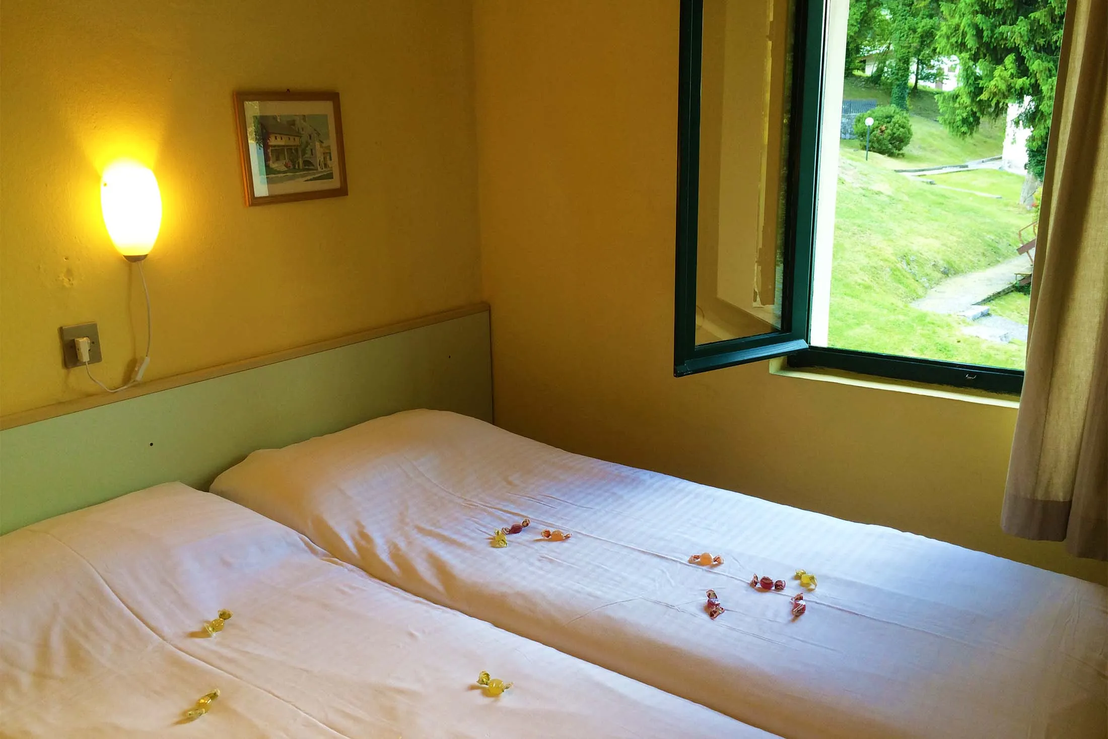 Er is parkeergelegenheid bij de ingang van het park. Vanaf daar moet je de trap af om de accommodatie en het meer te bereiken. Beddengoed is niet inbegrepen; je kunt je eigen beddengoed meenemen of huren (vooraf reserveren is vereist). Er is geen bad- en keukenlinnen aanwezig en deze dient je zelf mee te nemen.