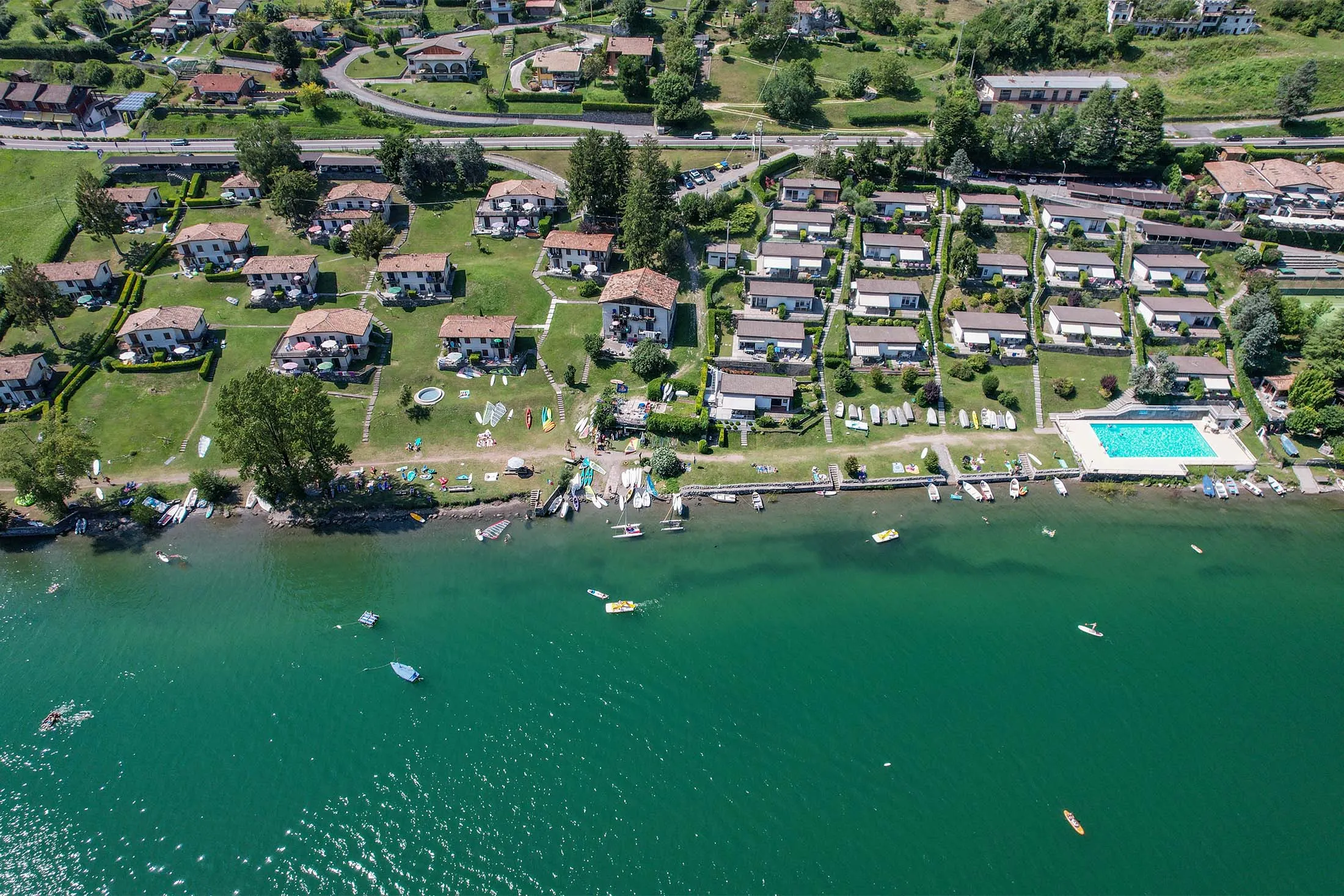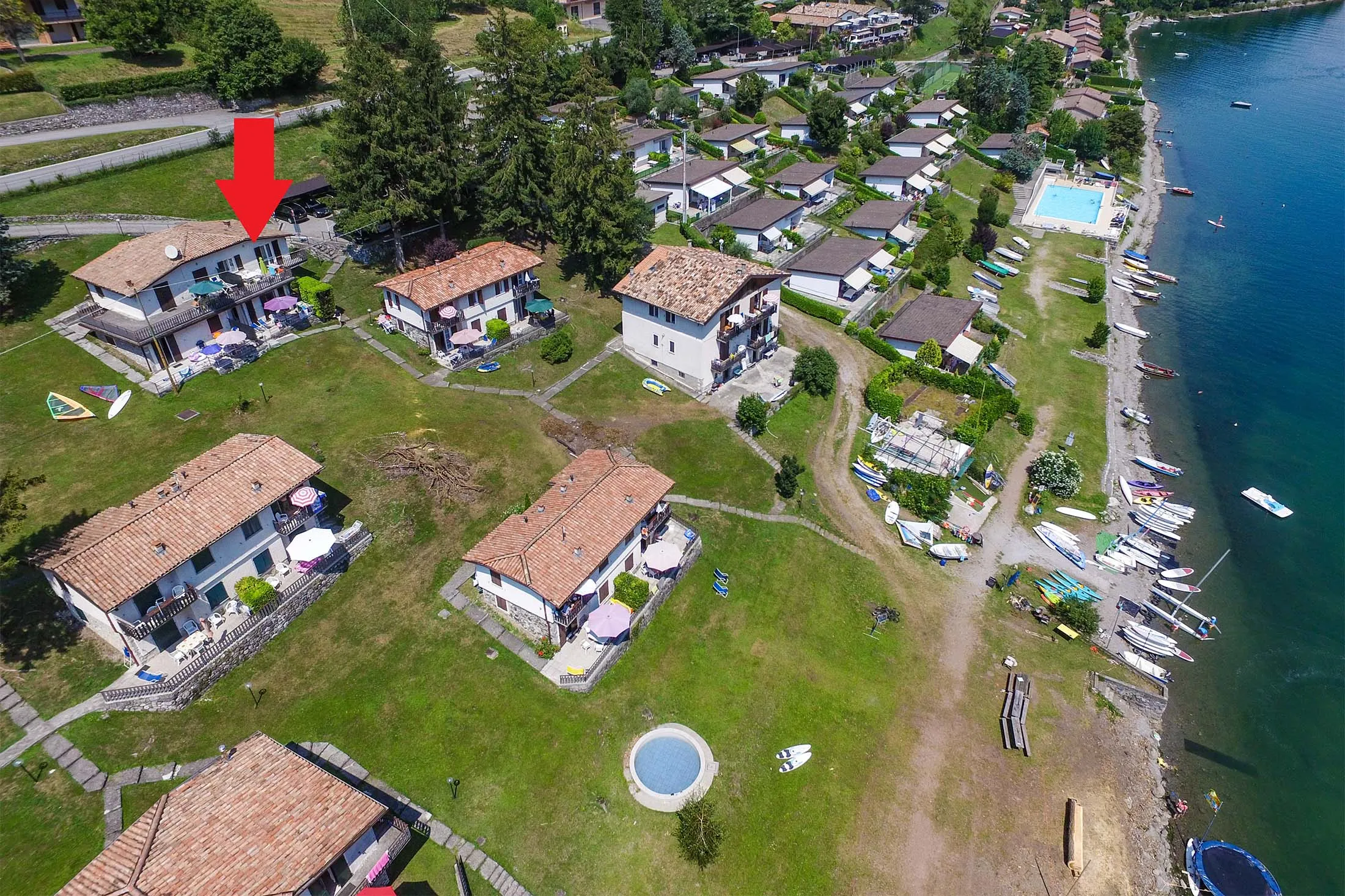 Het appartement ligt aan het meer en wordt omgeven door een groen park met natuurlijke terrassen die geleidelijk aflopen naar het strand en een prachtig uitzicht bieden.