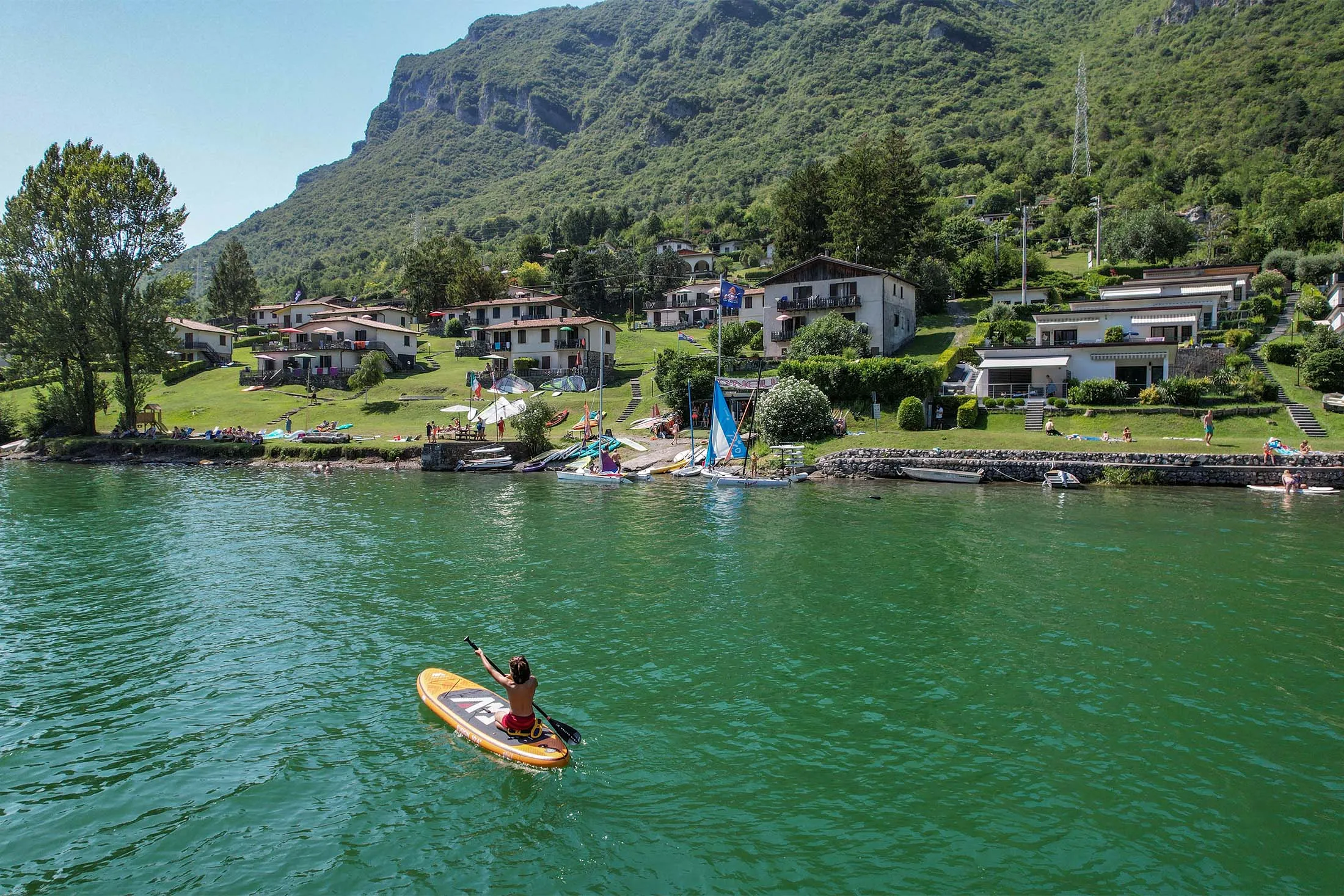 Een windsurfschool en verhuur van boten, surfplanken en SUP's zijn geopend van juni tot de eerste week van september.