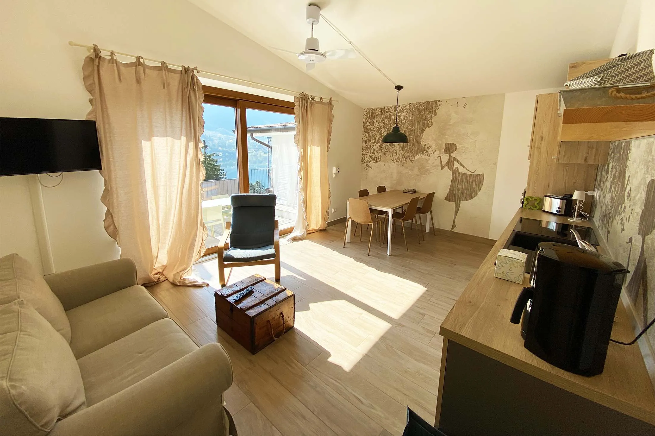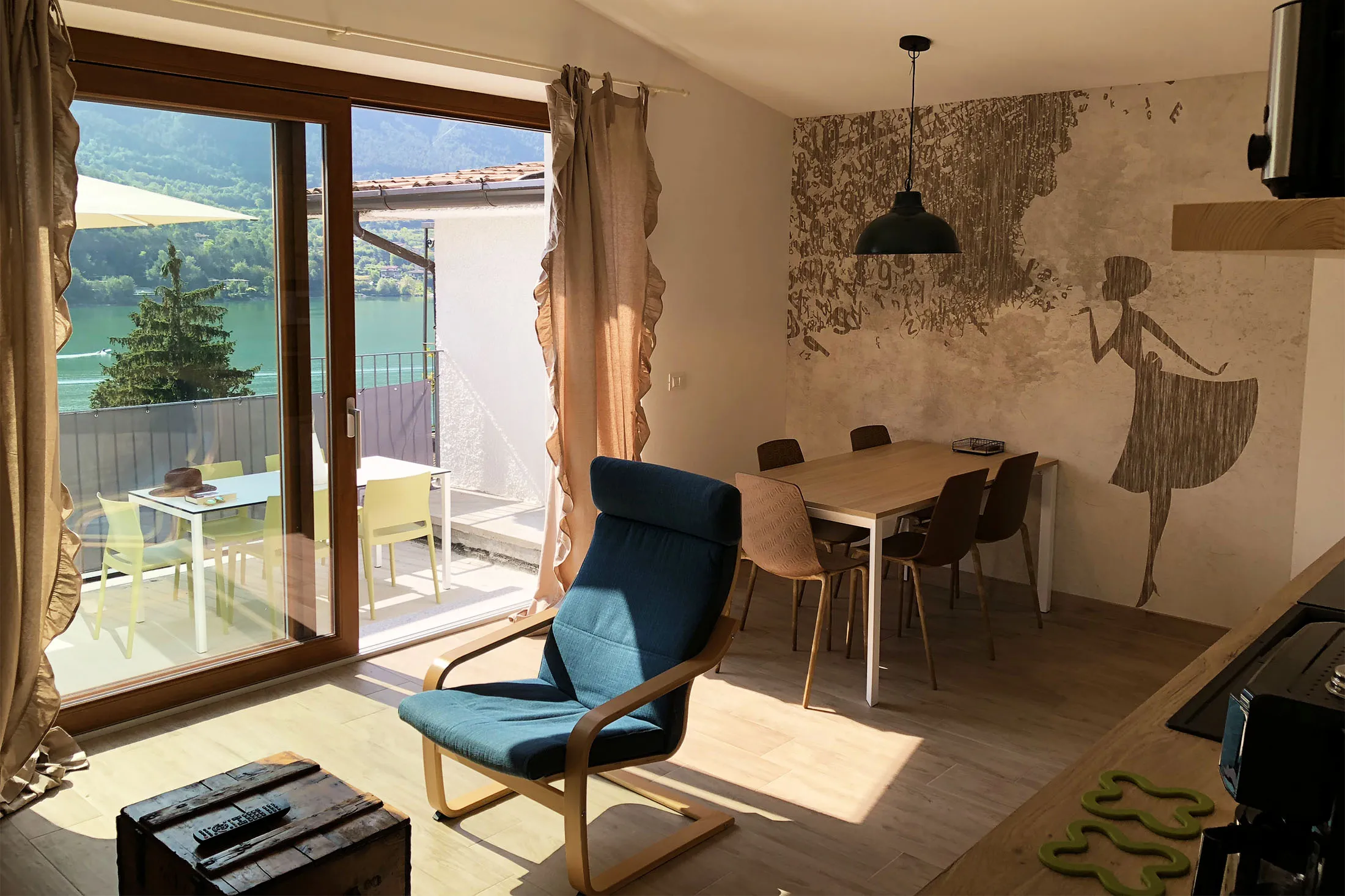 Luxe appartement van 75 m² aan het meer met een groot terras met een prachtig panoramisch uitzicht. Het appartement is voorzien van alle comfort en bevindt zich op de eerste verdieping boven ons restaurant, samen met drie andere appartementen ernaast.
