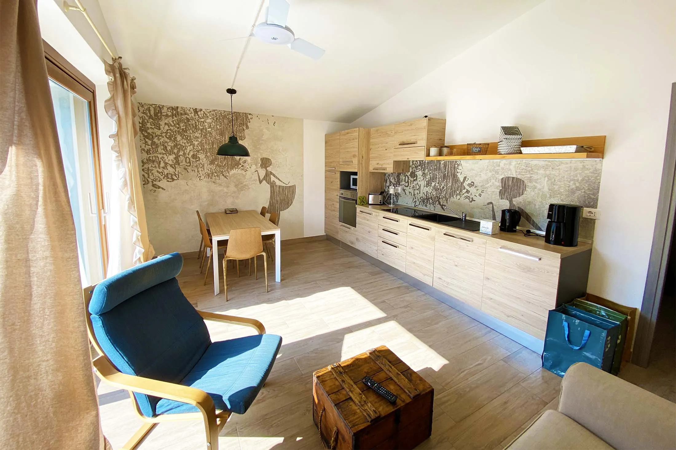 De parkeerplaats bevindt zich naast het gebouw, vanwaar een trap naar de eerste verdieping en de ingang van het appartement leidt. Het meer ligt hemelsbreed op slechts 80 meter afstand, maar het strand is 200 meter lopen via trappen en paden. Beddengoed is niet aanwezig; je kunt dit zelf meenemen of huren (reserveren verplicht). Bad- en keukenlinnen is niet aanwezig en dient je zelf mee te nemen.